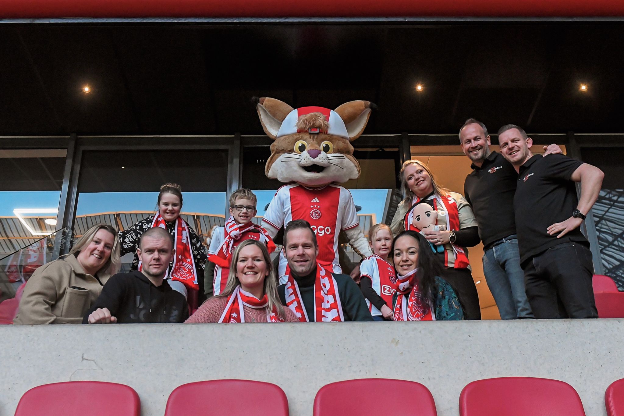 Vanaf de beste plekken in het stadion keken zij naar een wedstrijd van hun favoriete club. Als verrassing brachten mascotte Lucky, Ronald de Boer, Remko Pasveer en Heini Otto een bezoek aan de box. En zo had Luuk een mooi onderonsje met Ronald de Boer terwijl Remko Pasveer het vriendenboekje van Jayce invulde 🥰. Met een warme Ajax sjaal, een mooie gesigneerde bal en natuurlijk een extra knuffel van Lucky hopen we dat deze gezinnen nog lang terug zullen kijken op deze fantastische beleving.